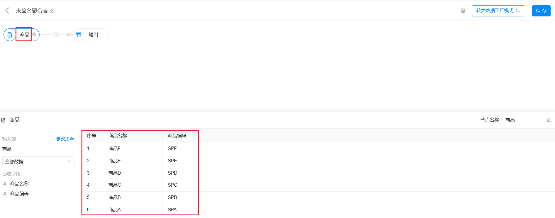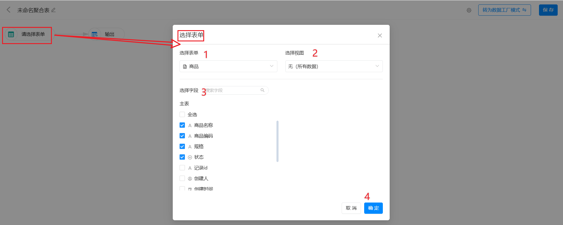 选择表单是聚合表中数据流入的入口,用来选择要处理的数据源。在选择表单时,可以自由勾选所需的字段。