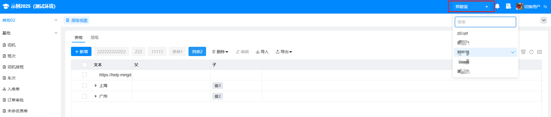 - 选择应用:当前选中的是"示例2025(本应用)"