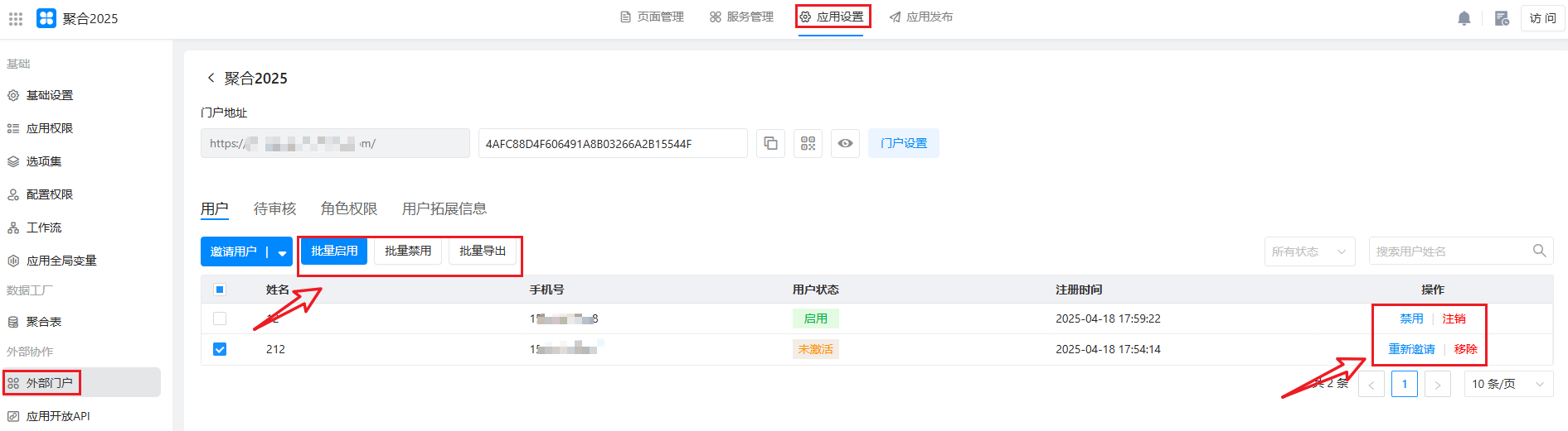 启用后,即可看到外部门户的注册和登录的链接/二维码。