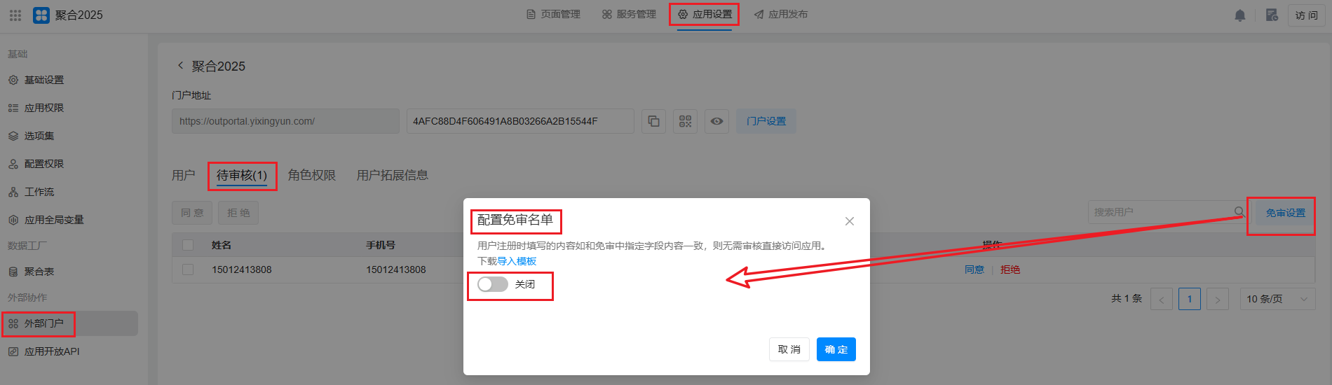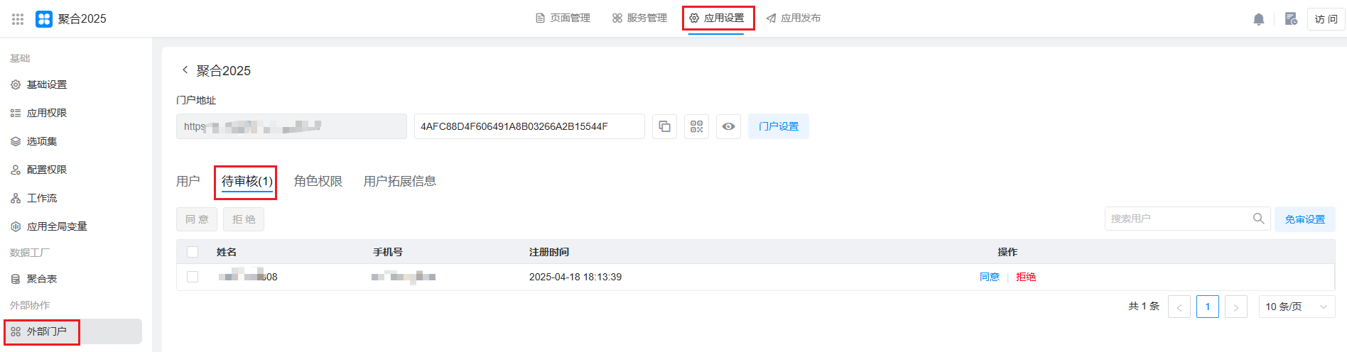 - 审核通过的用户: 开启审核机制,审核通过才可以访问应用。