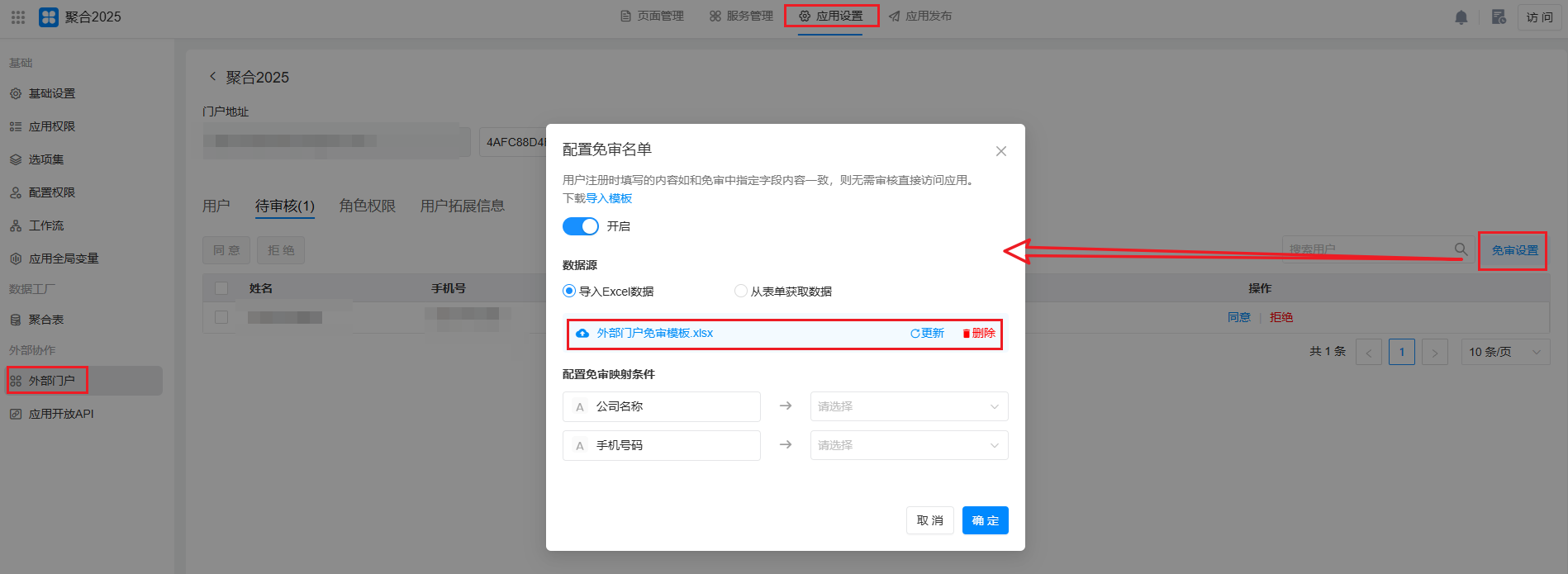 2) 配置免审映射条件