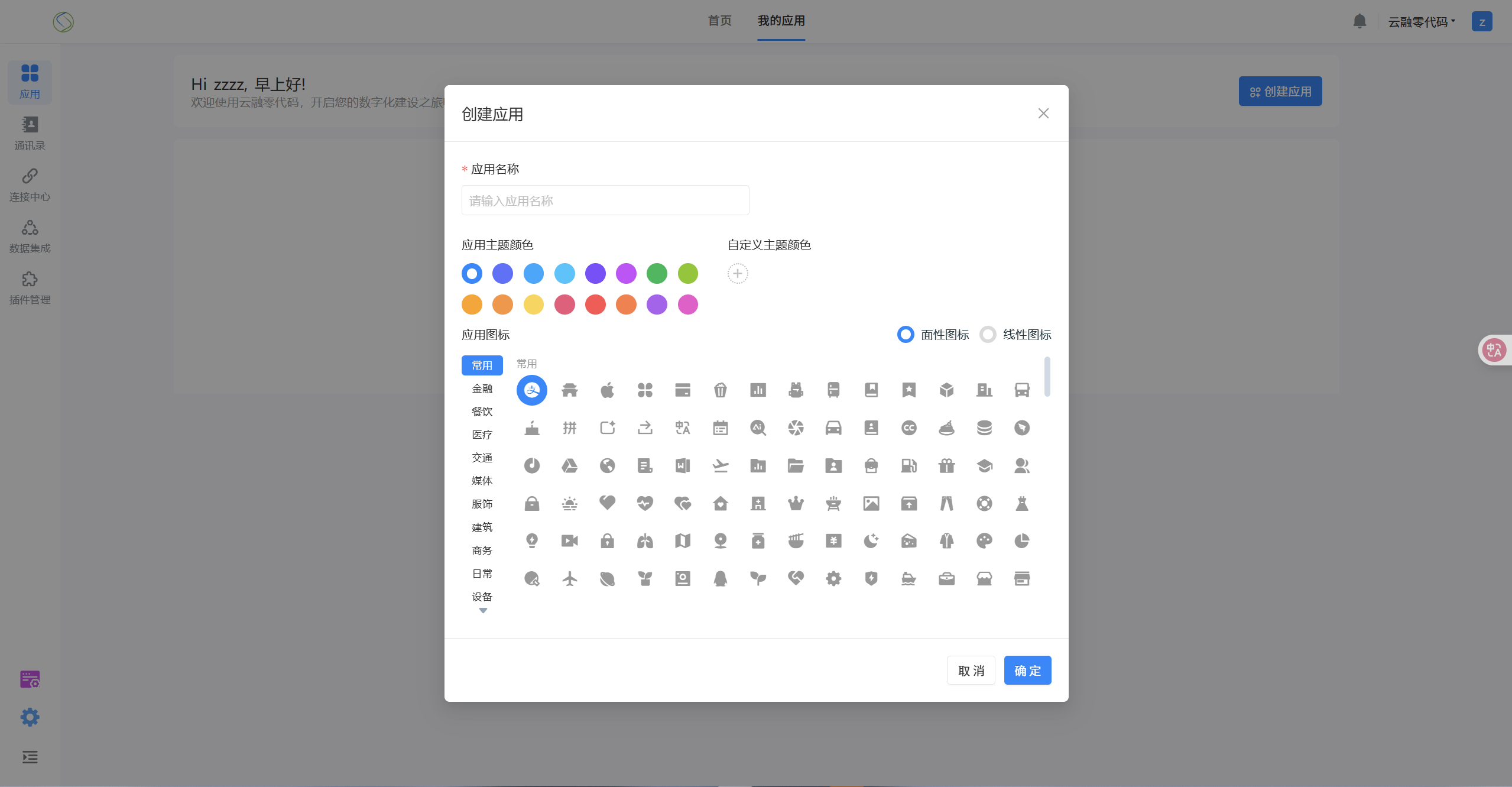 选择创建空白应用填写应用名称,选择应用图标和主题色,点击下面的「确定」就创建了一个空白应用。