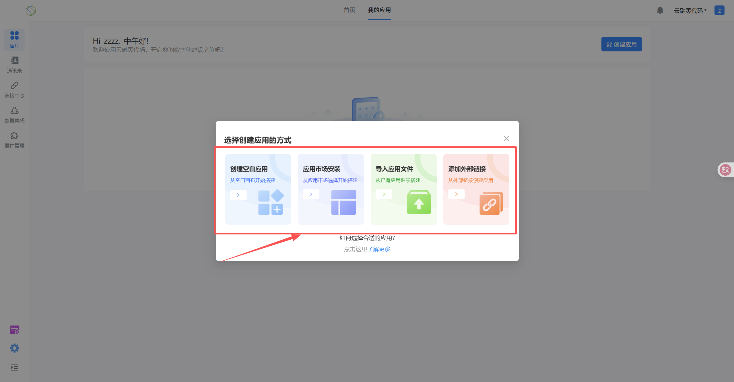 创建一个新应用,有4种方式