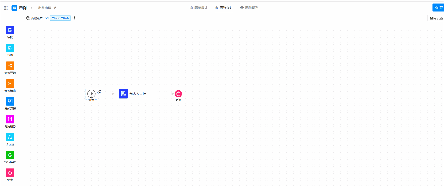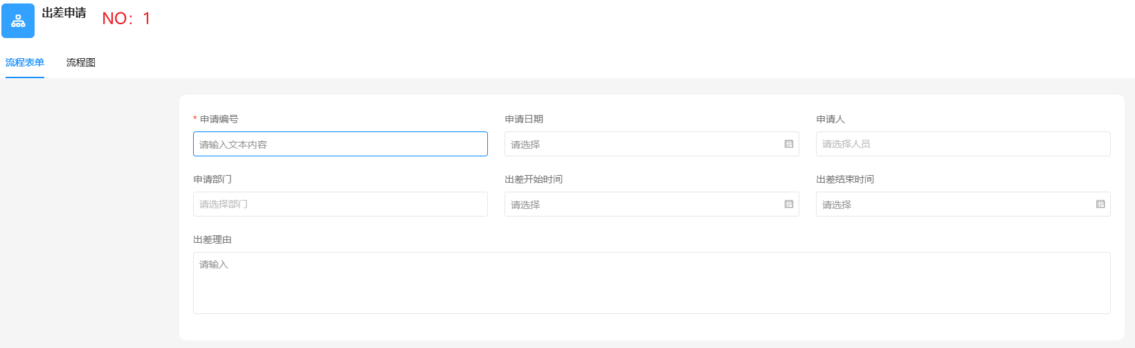 如下图,出差申请流程,在申请时可以编辑出差申请所有字段,在负责人审批节点只能编辑,出差时间,以及出差理由。