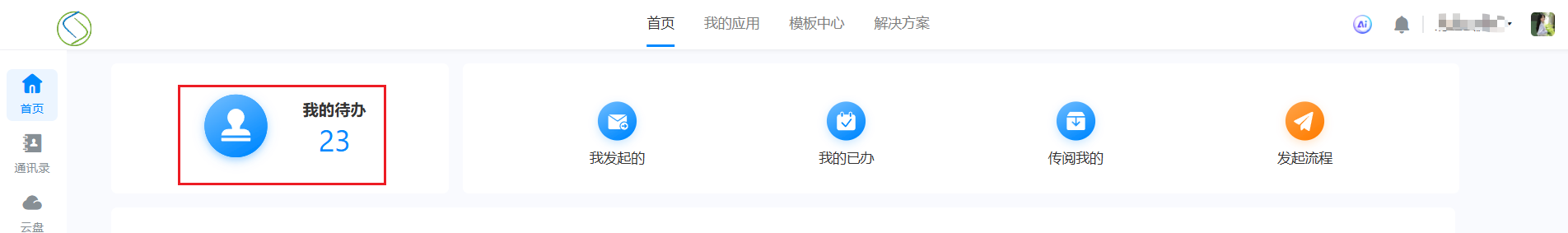 在工作台的流程中心处,可以查看整个企业中需要我处理的待办流程。如下图所示:
