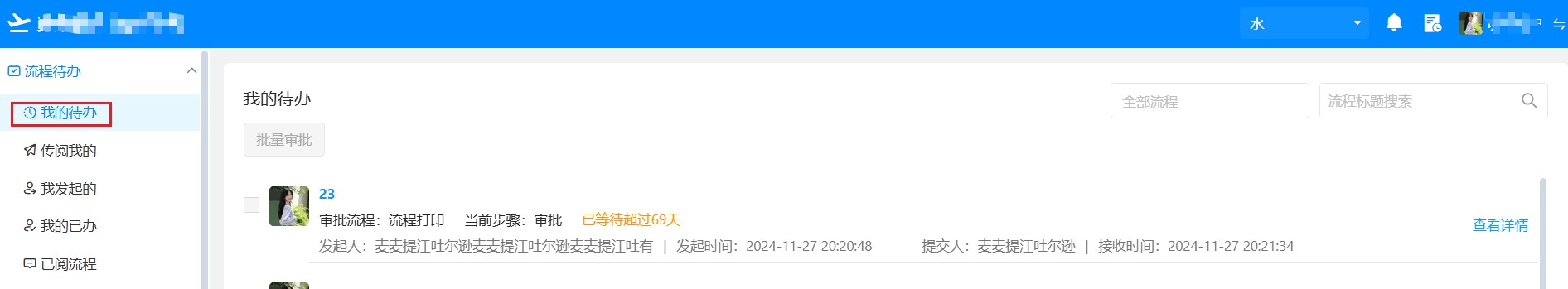 我的待办负责人为本人的流程数据,即需要本人来处理的流程。