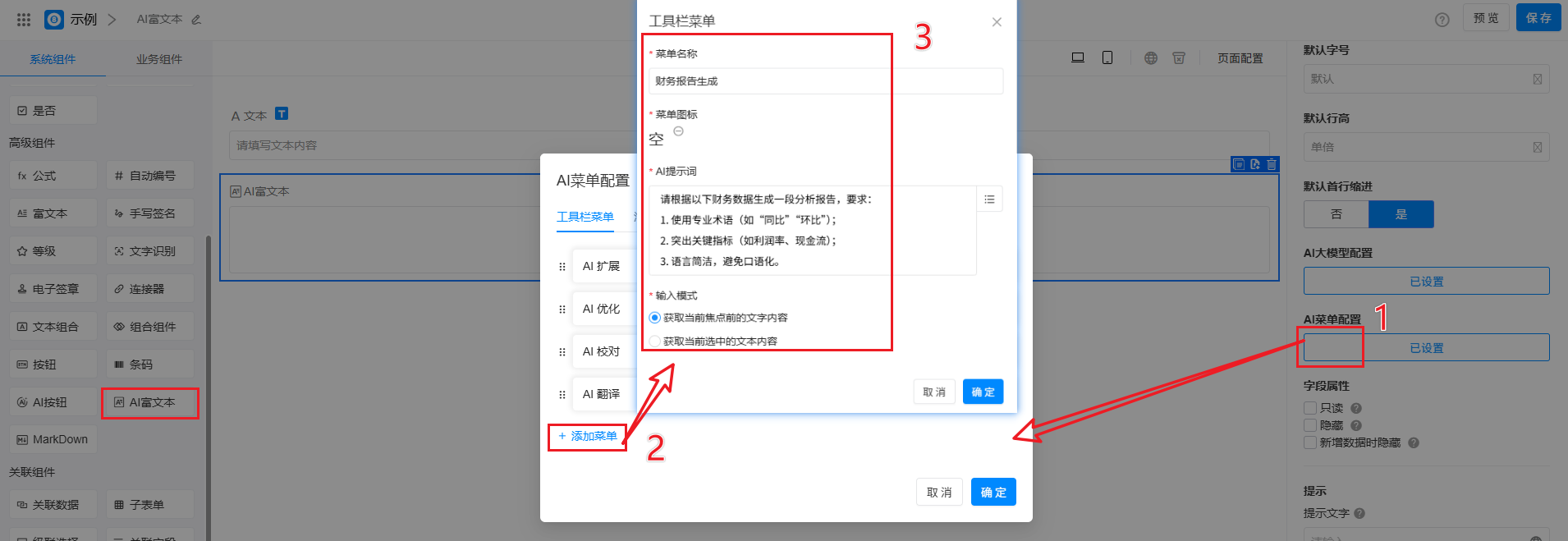 也可以根据实际场景自定义 AI 功能,比如财务场景,营销场景,论文场景等等。
