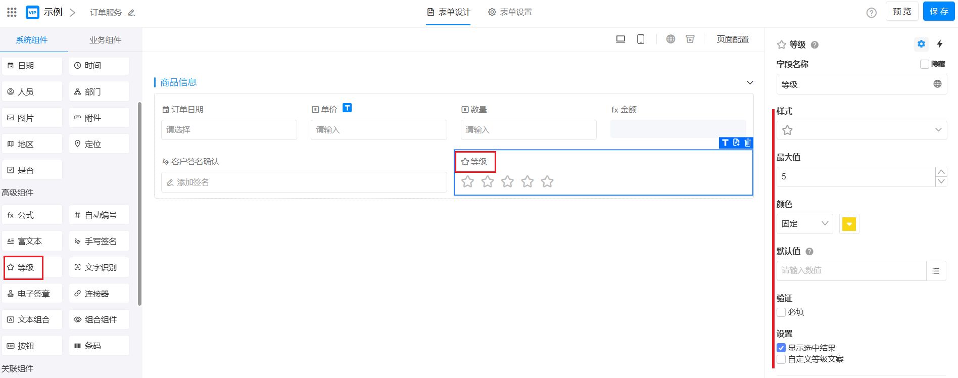 • 可定义等级数字(最大10,最小1)
