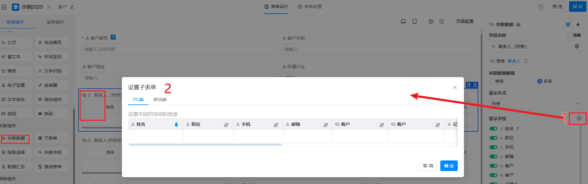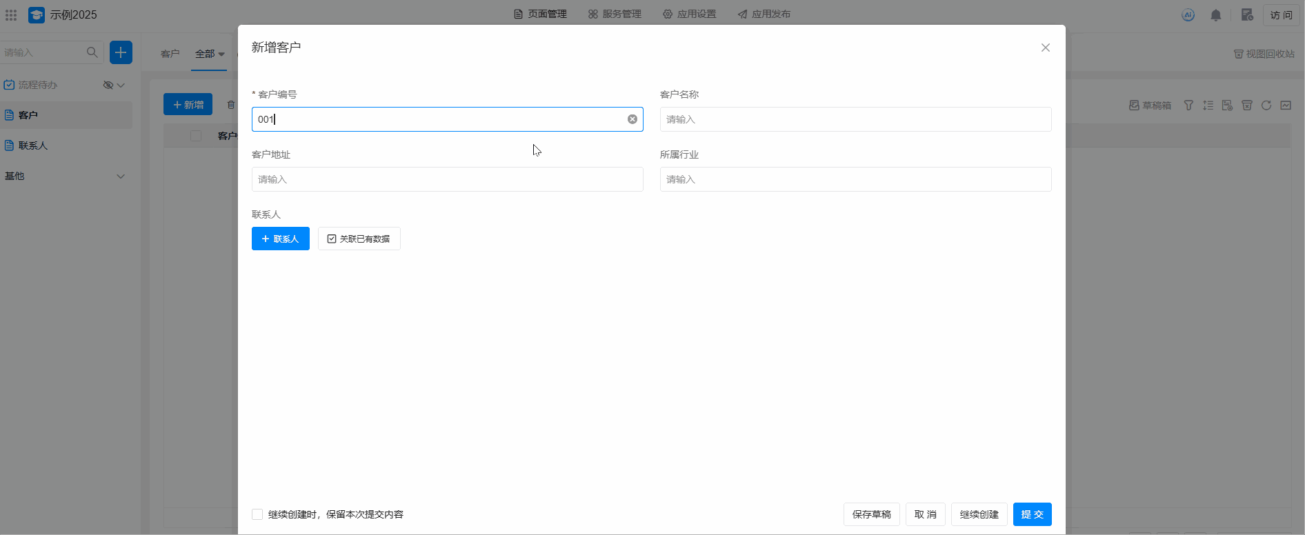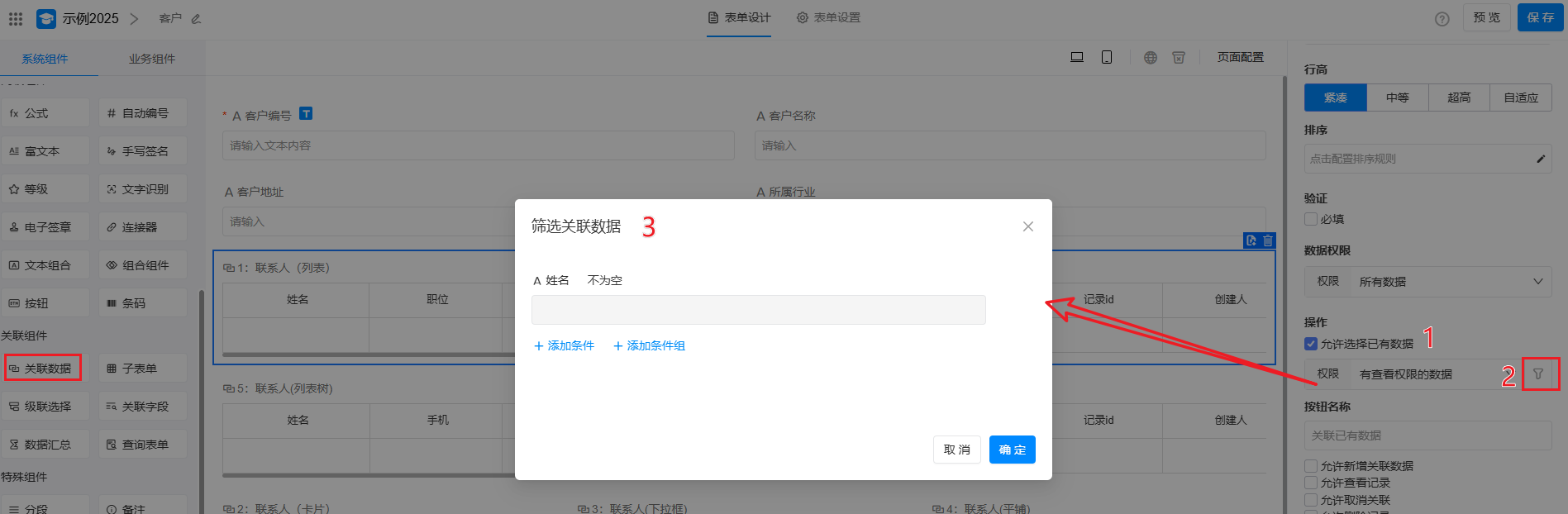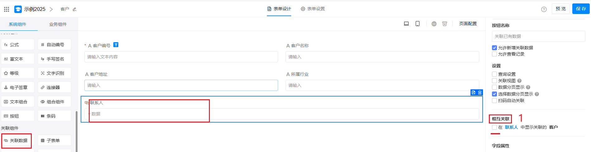 本文在客户表中,建立和联系人表的关联为例,介绍如何通过 关联数据 功能,构建客户、联系人、销售订单间的关联关系,实现业务表单间的数据互通、高效协同。