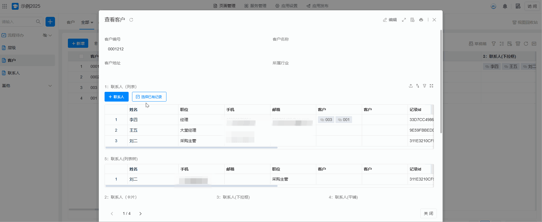 选择确定后,系统就赋予了客户表的记录可以关联联系人表记录的能力。