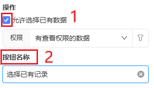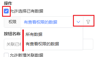 可以通过「按钮名称」的设置对【关联已有数据】的按钮名称进行调整,确保其符合实际需求。