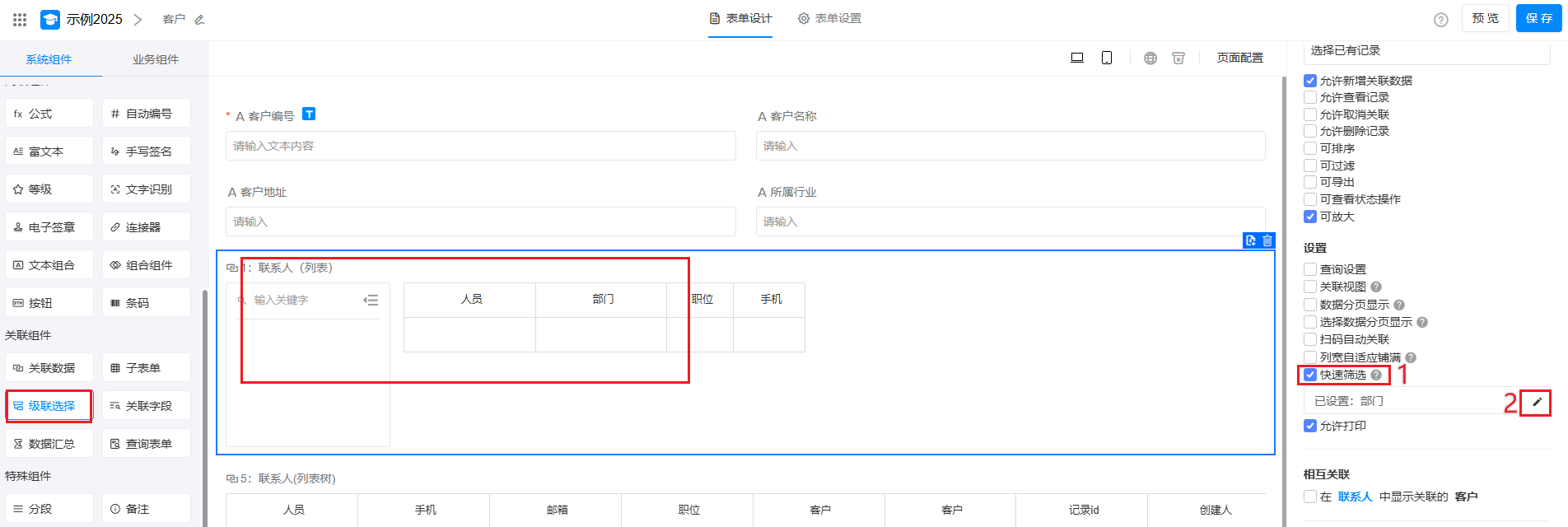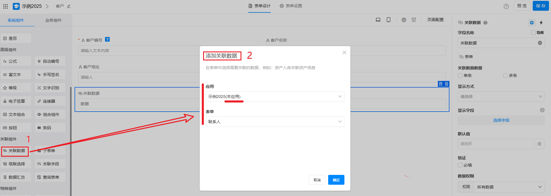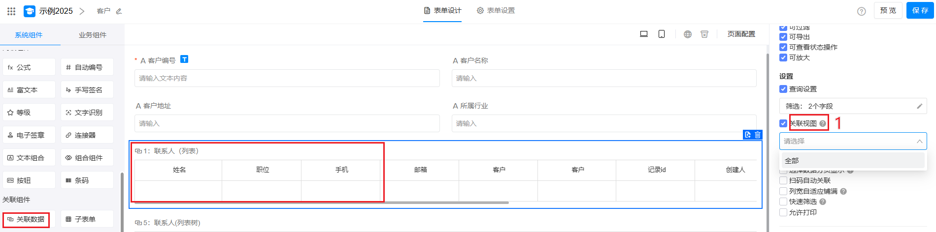 本文在客户表中,建立和联系人表的关联为例,介绍如何通过 关联数据 功能,构建客户、联系人、销售订单间的关联关系,实现业务表单间的数据互通、高效协同。