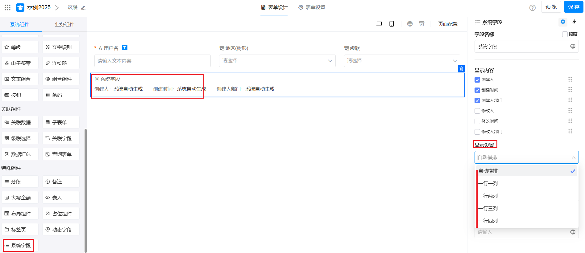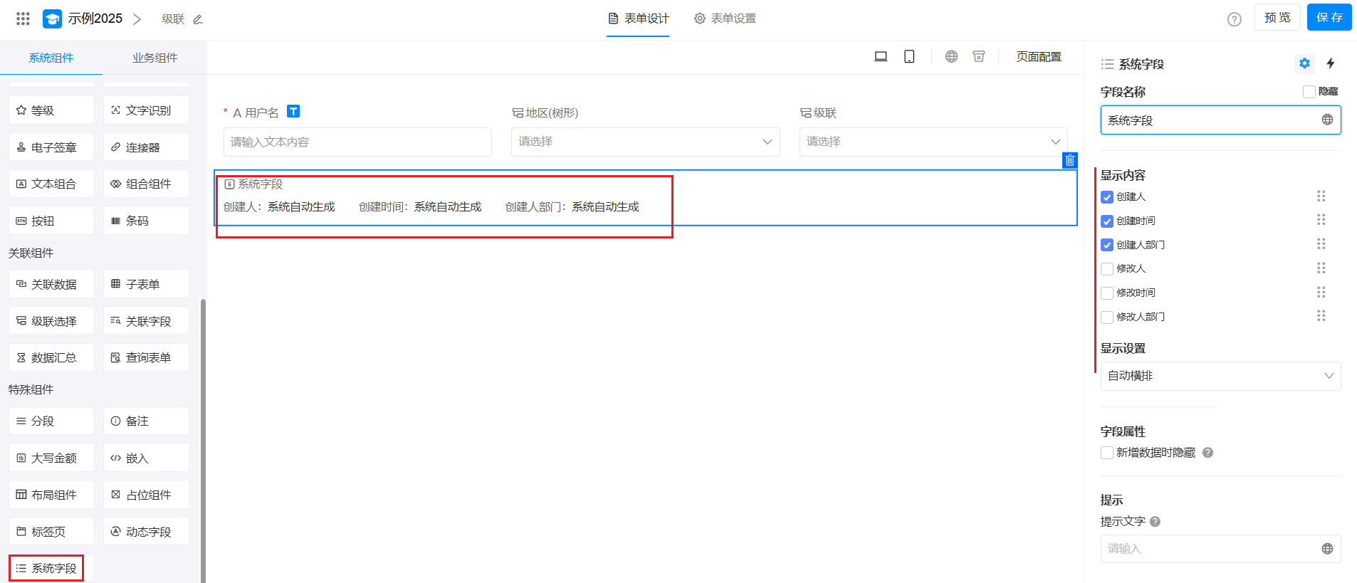 系统字段