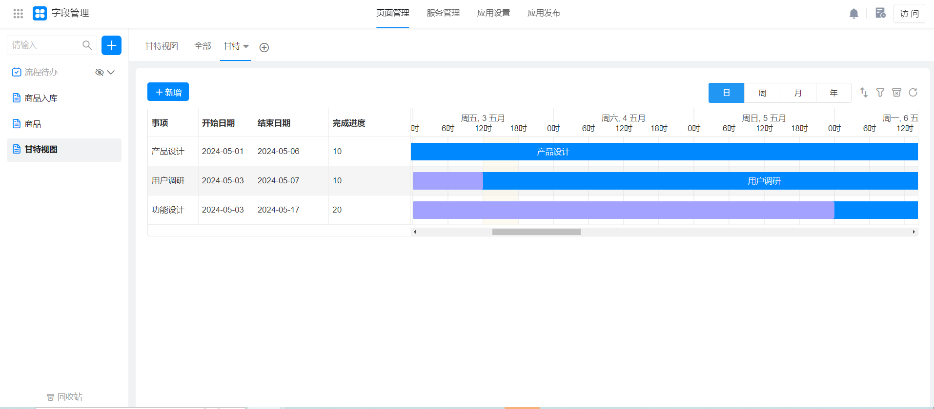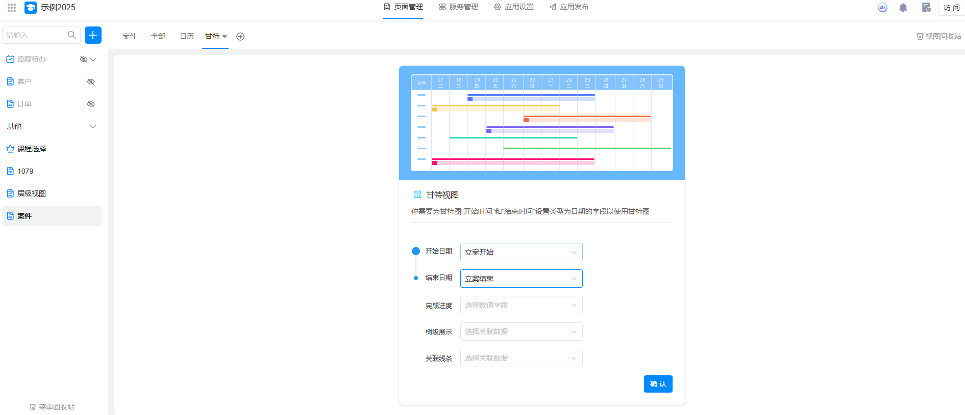 甘特图设置指把本表单那些日期字段做为甘特图的"开始时间"和"结束时间"