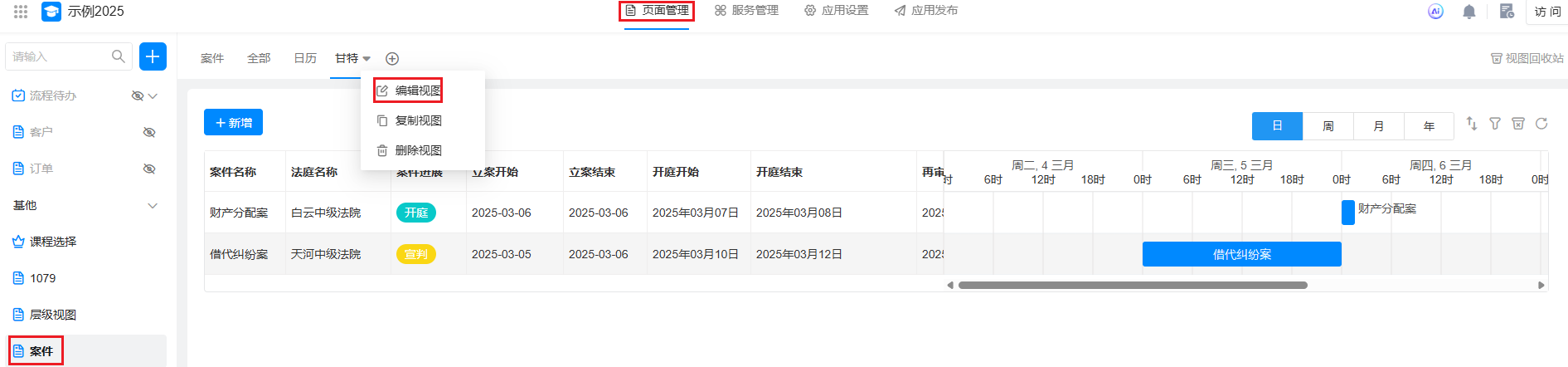 点击视图栏上面的 甘特视图,选择「编辑视图」,进入甘特视图编辑页面。