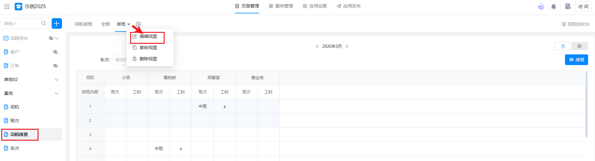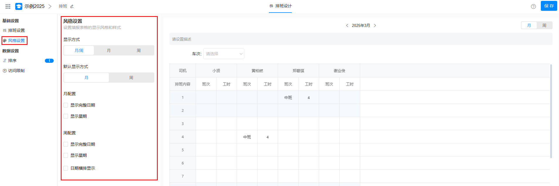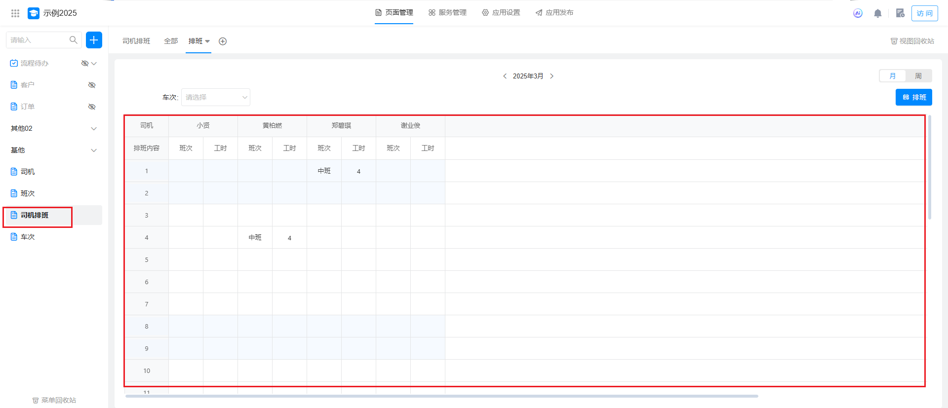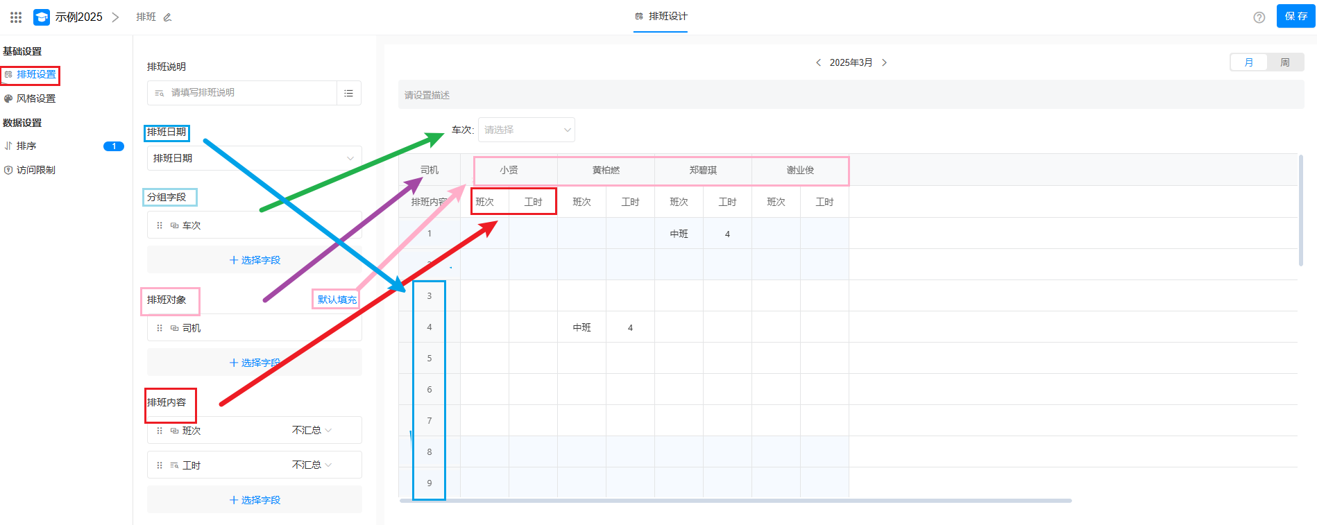 | 排班内容 | 必填,支持关联数据、关联字段、文本、数值字段 |