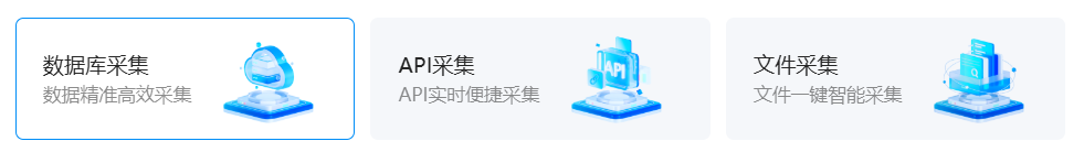 | 采集方式 | 数据库采集/API采集/文件采集 | 数据库采集:结构化数据批量抽取 API采集:基于RESTful接口实时数据获取 文件采集:文件批处理导入 |