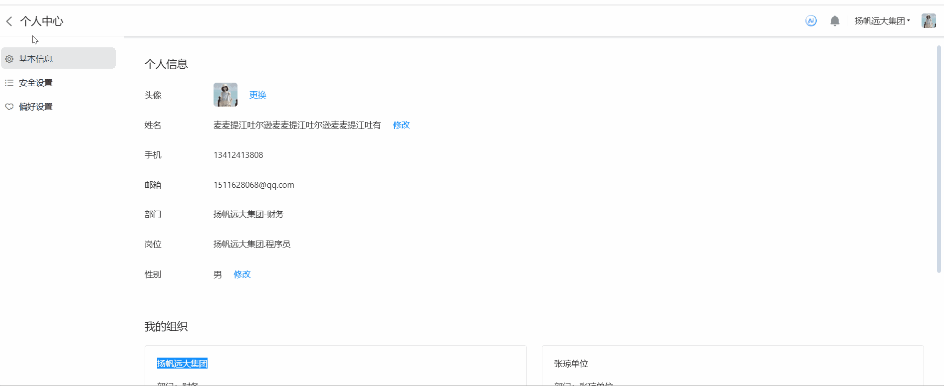 2️⃣个人头像信息针对是全局的,在任一终端修改,任一组织下修改,该用户在其他终端下,组织的头像,应用中的个人头 像也会相应修改。