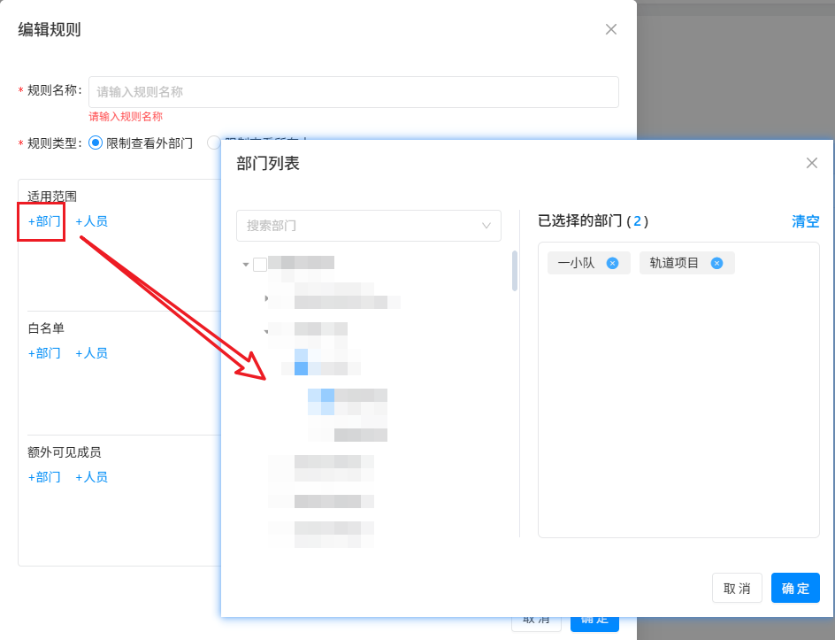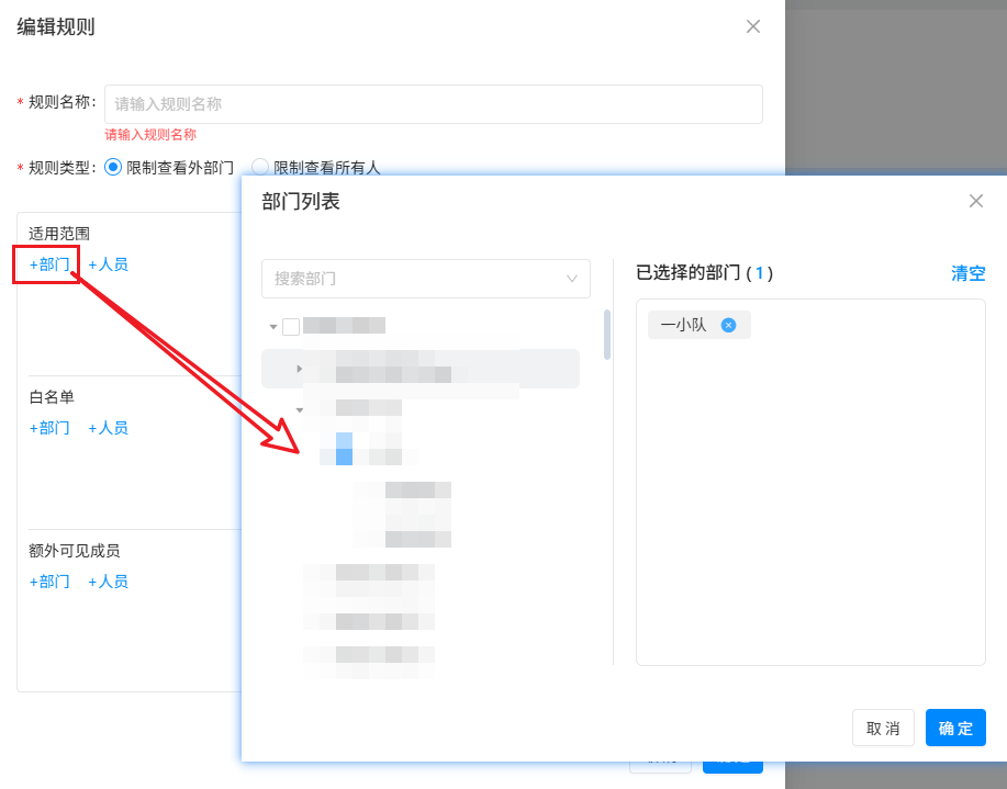 - 规则类型选择限制查看外部门