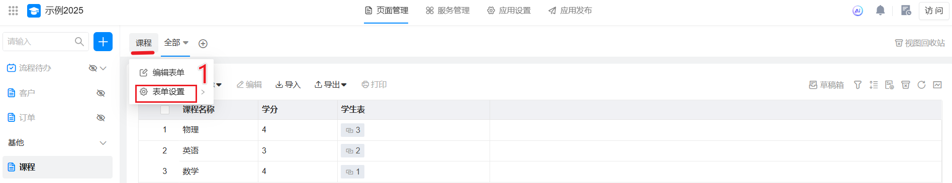 方式1:选择数据所在表单,进入「编辑表单」页面,选择「表单设置」,进入表单设置页面。